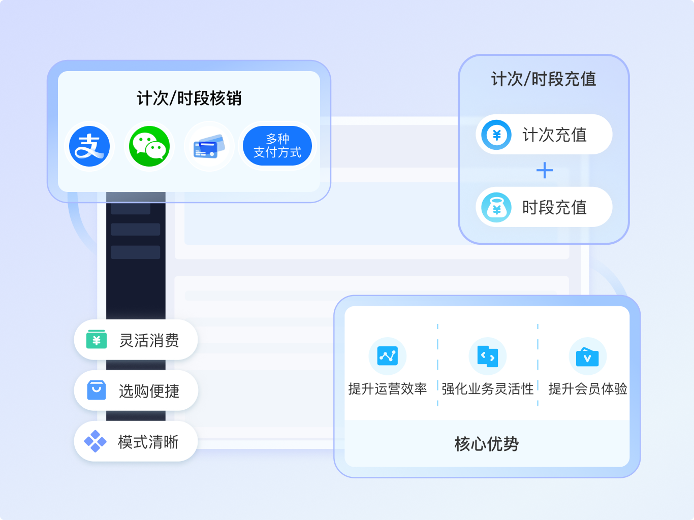 - 多种收银方式:支付宝、微信、现金、会员卡等