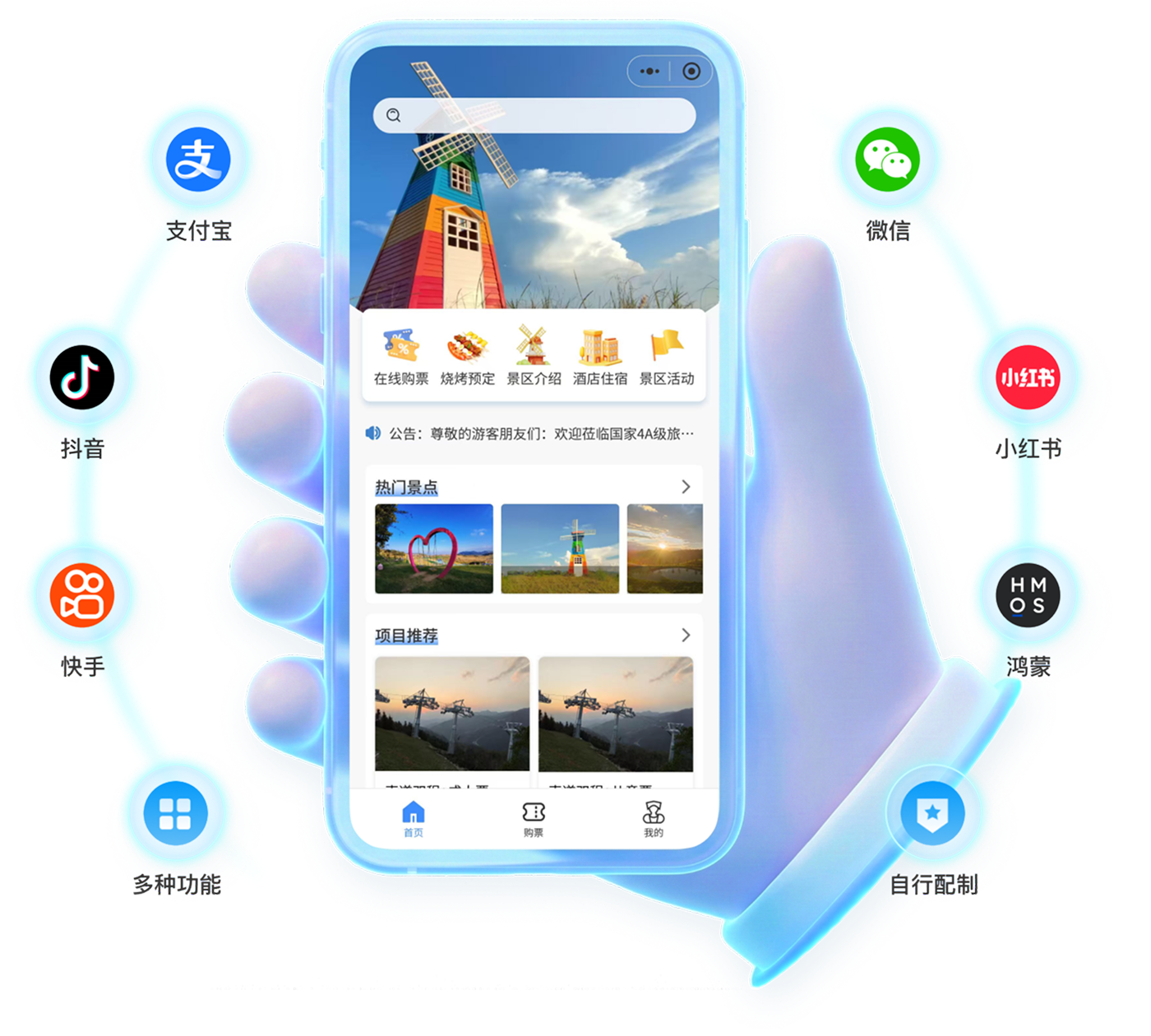 手持机集成售票、核销、打印功能,支持多元支付与实时数据同步,其便携移动特性可灵活应对高峰客流,显著提升入园效率与管理效能。小泥人一键游/全域旅游解决方案即可满足景区所有需求,助力景区发展